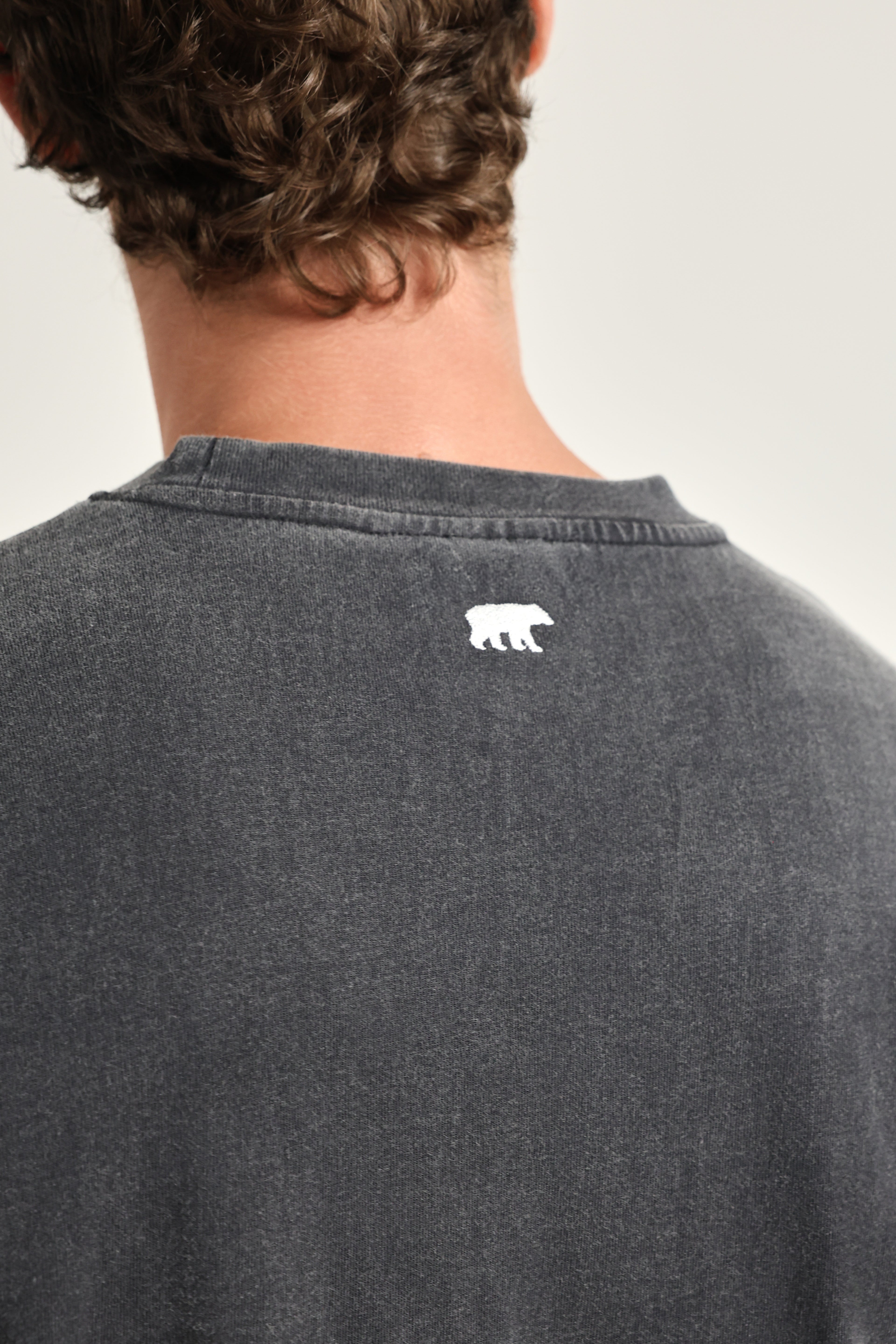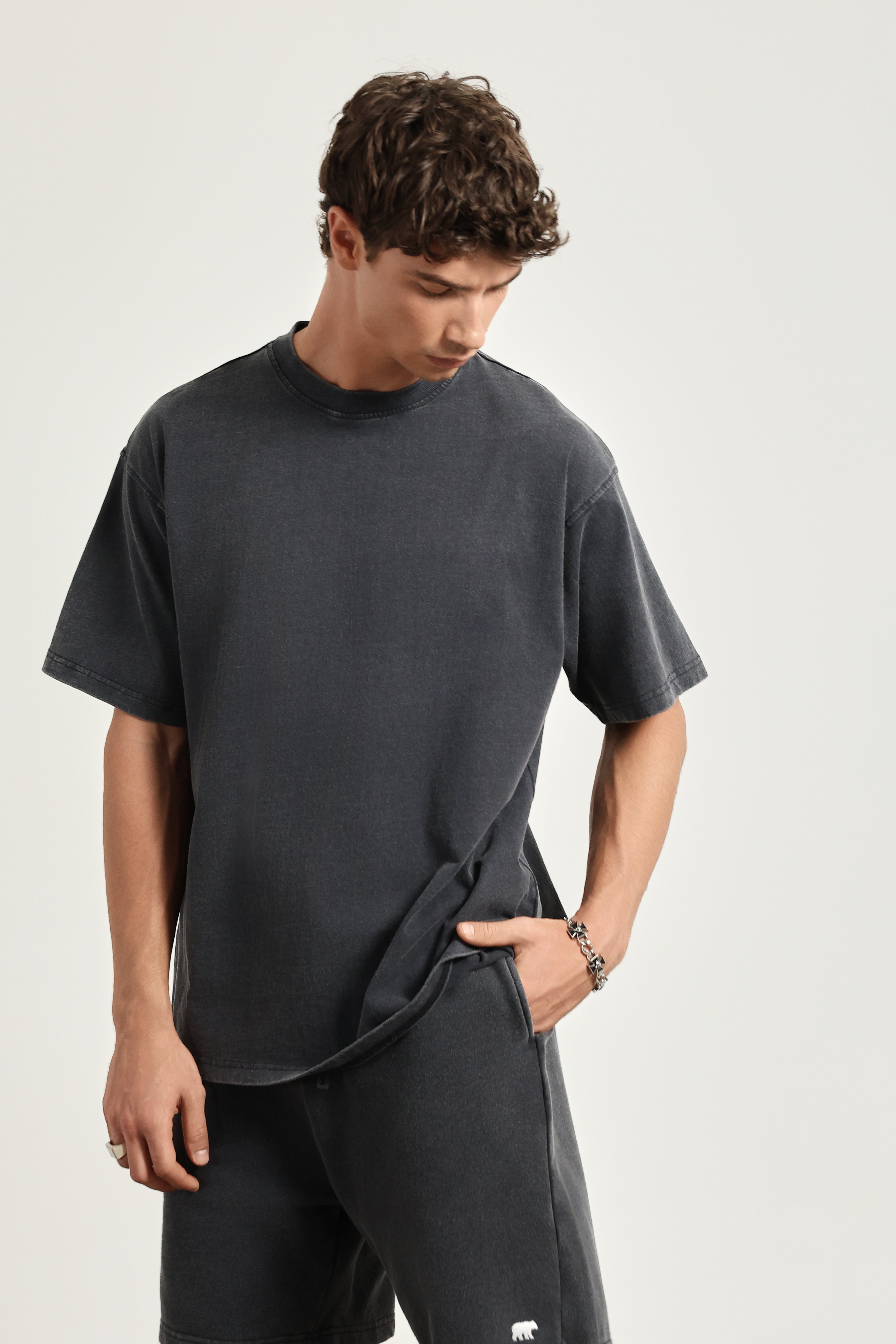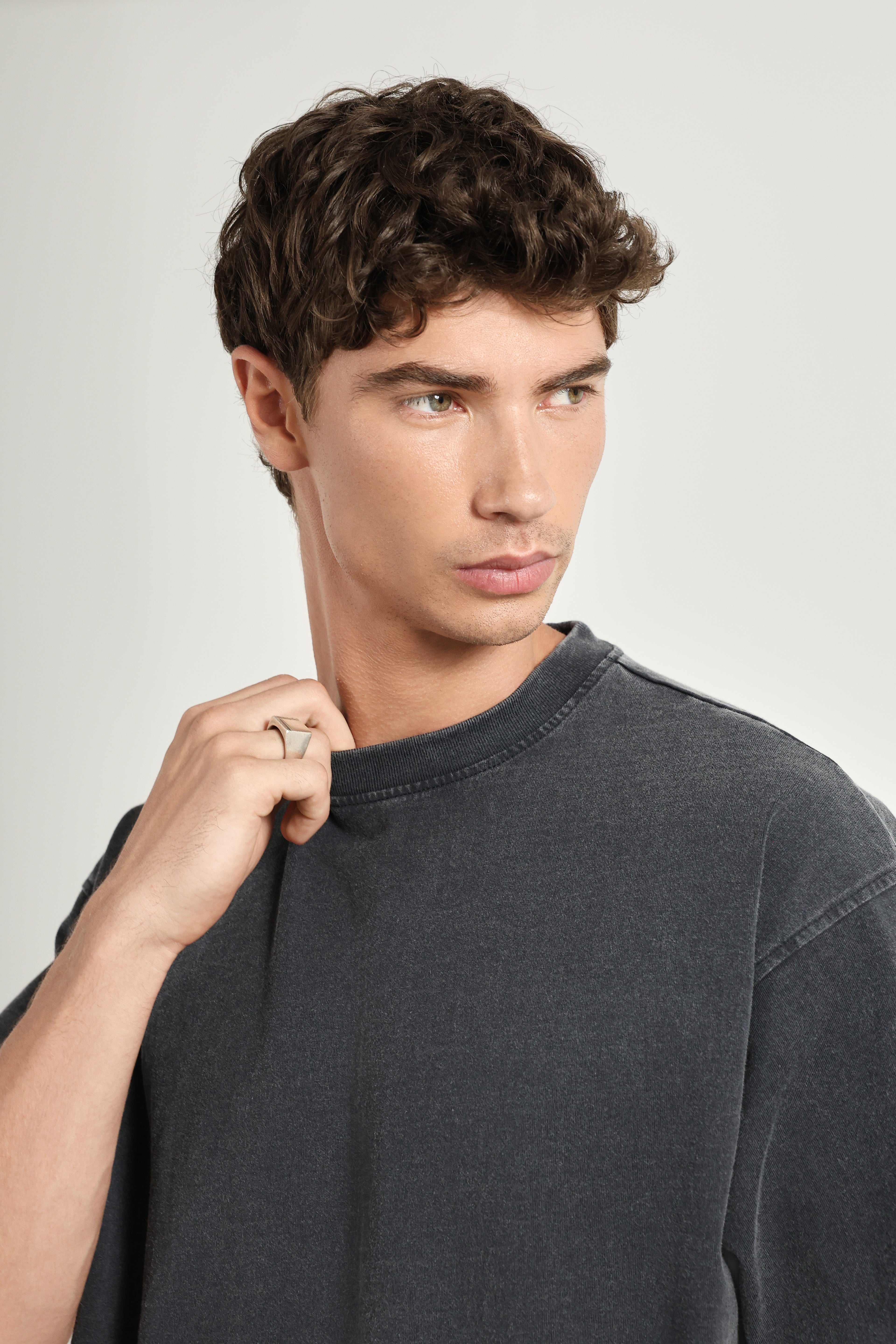 חולצה בצבע אפור משופשף בגזרת אוברסייז, עשויה מ100% כותנה איכותית.