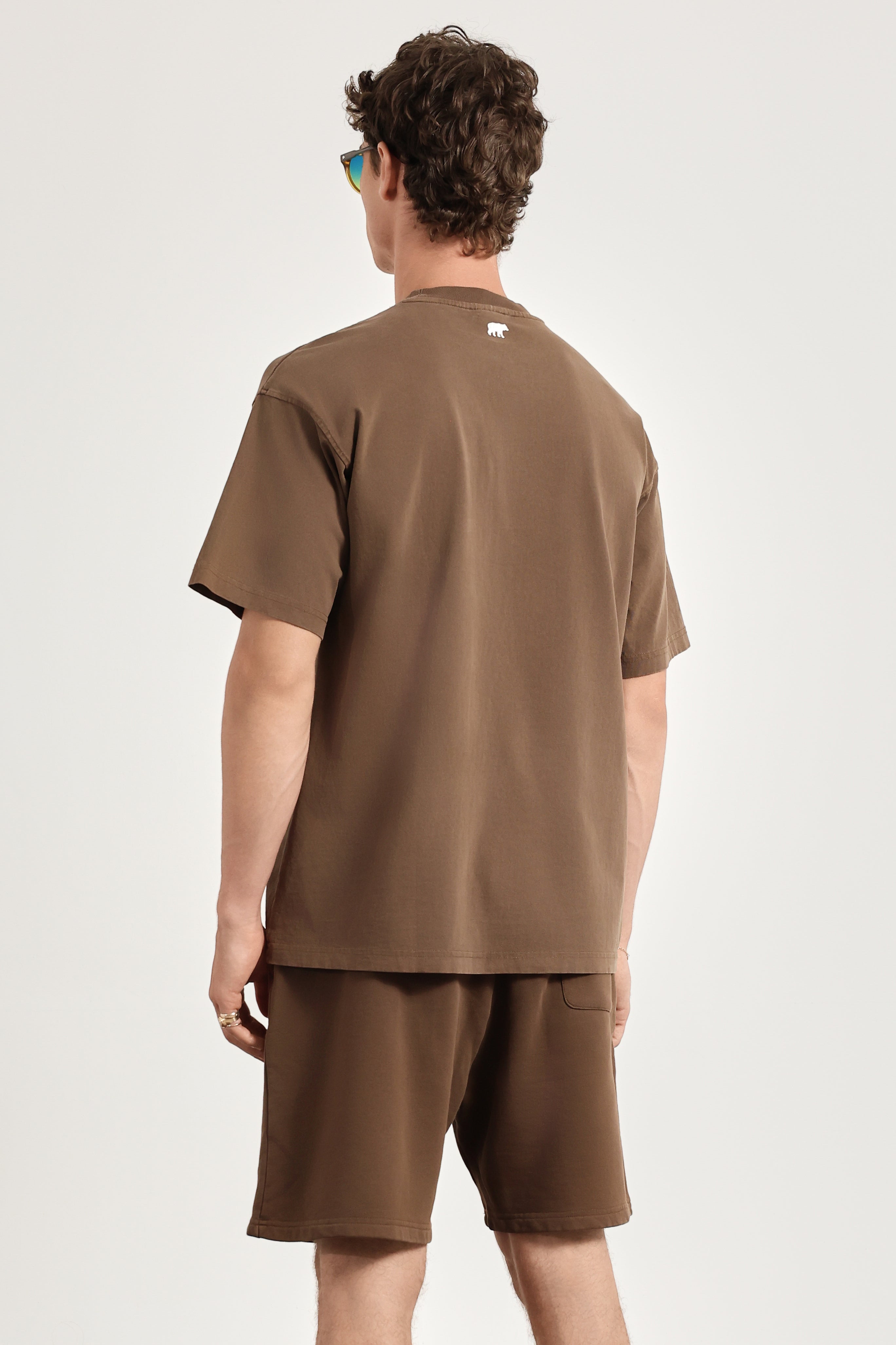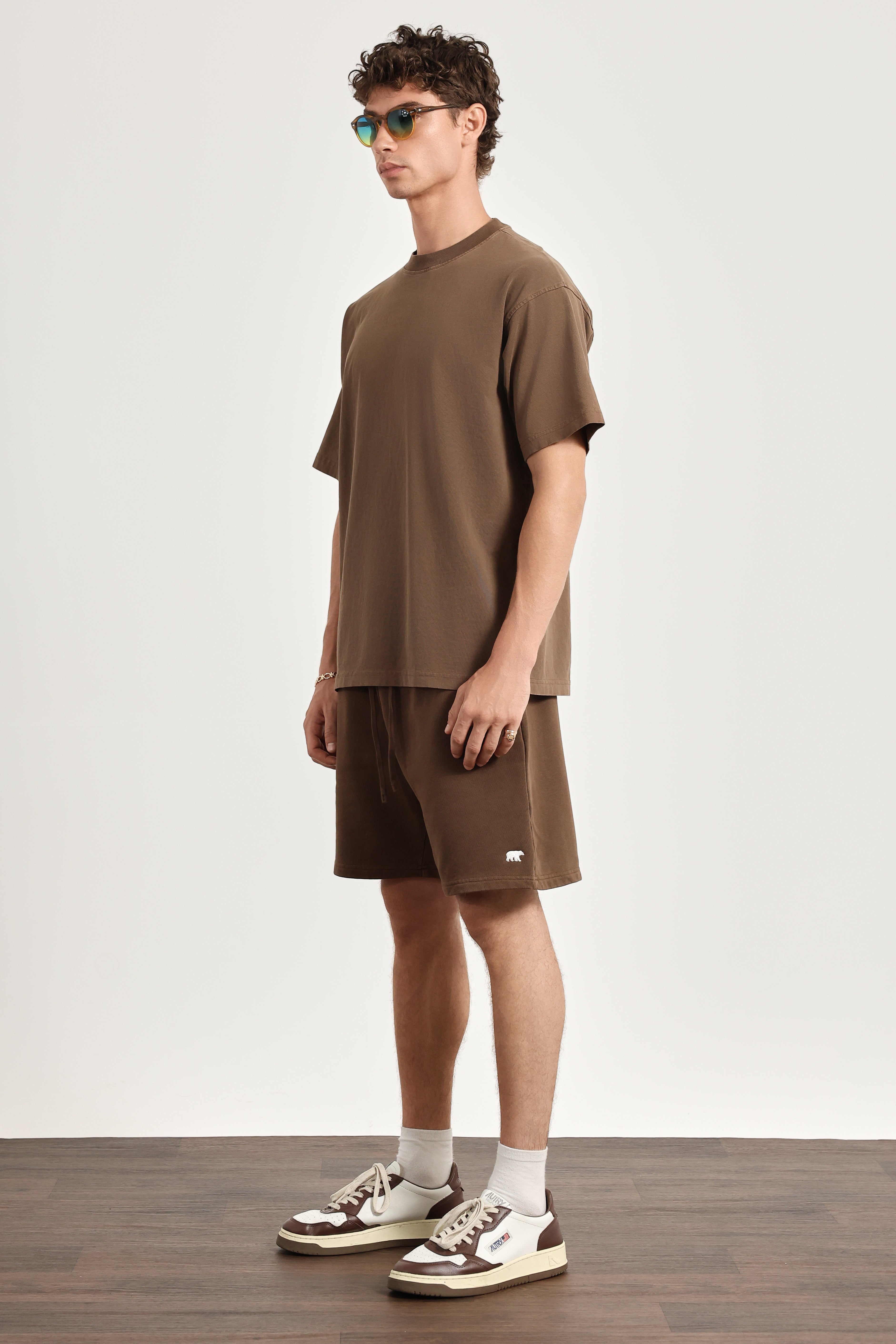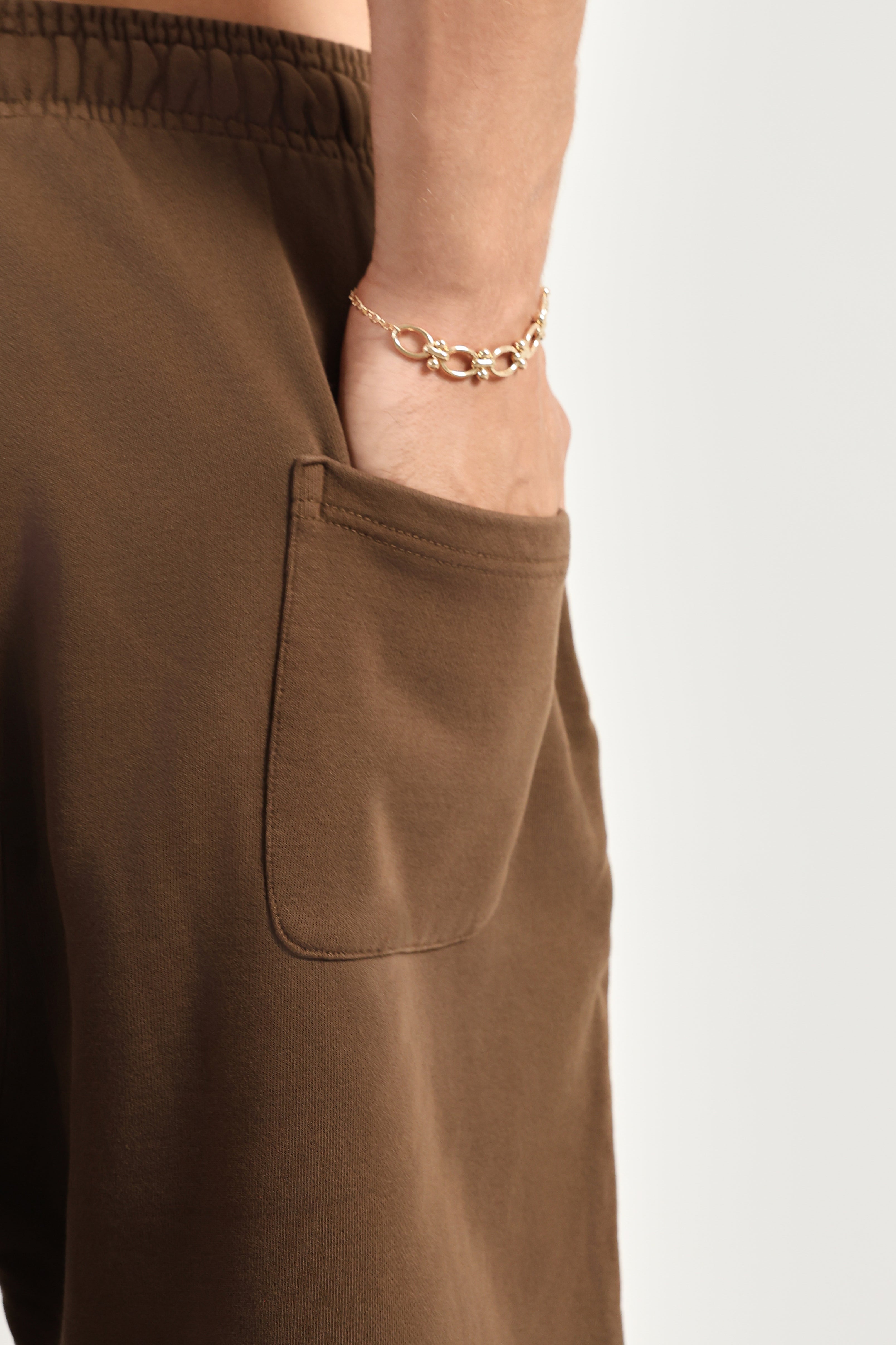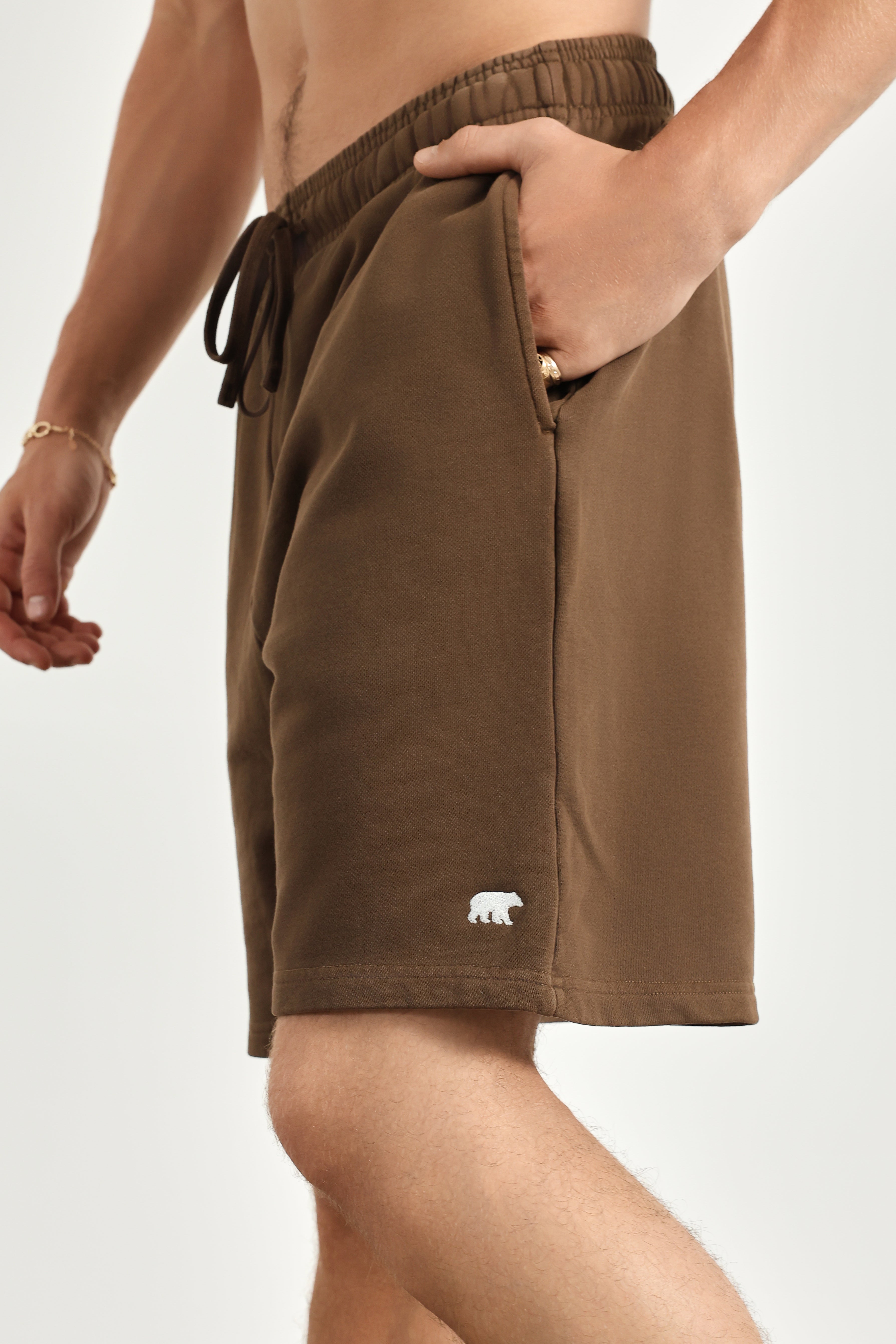 מכנס קצר בצבע חום מבד 100% כותנה איכותי עם גימור נקי.